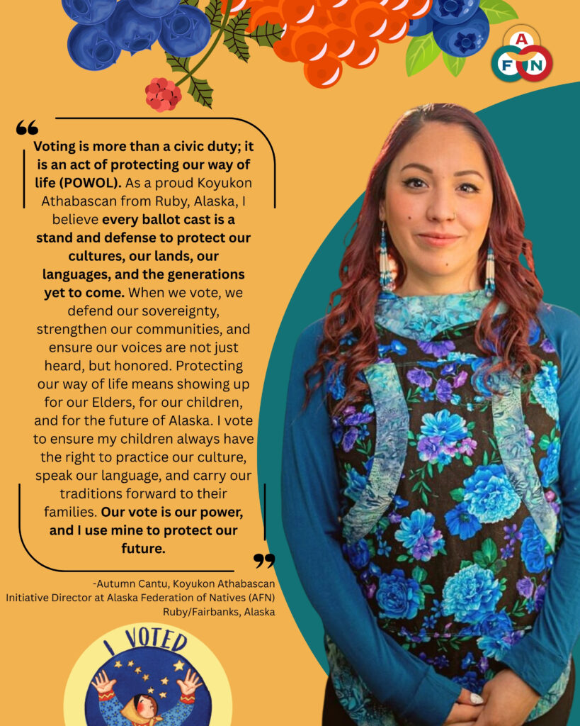 - Direct Voter Contact and Community Building – The AFN Navigators, GOTNV’s Youth Ambassadors, RIO Team, Interior Native Vote Ambassador program, and more, are already set up to engage with our communities through direct organizing. Our experience has already demonstrated that hiring people within the community and the region is one of the most successful tactics, one that needs growth and effectiveness.